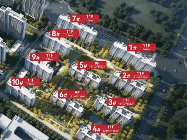 户型设计:大华主打106-135㎡的低密洋房,得房率78-80%,比高层多了5-8㎡的使用面积。就拿106㎡的三房来说,做到了双卫套房设计,南向面宽11.5米,采光和视野直接拉满。对比中粮祥云的106㎡户型,得房率仅75%,同样面积实际使用空间小了一圈。
