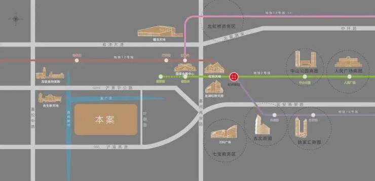 商业配套方面:项目对岸规划商业,1km范围内拥有虹桥食尚天地、永业购物中心醇熟配套;3km内有夏都小镇、天空之城、蟠龙天地等商业中心;约5km抵达虹桥枢纽、瑞安虹桥天地、龙湖虹桥天街等核心区配套。
