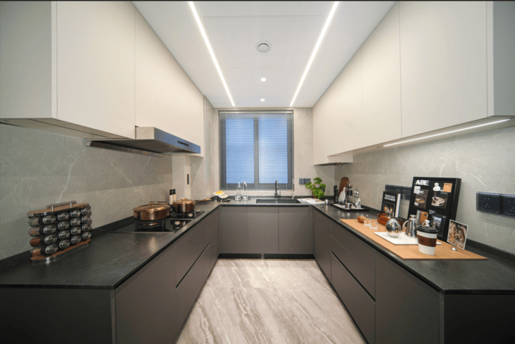 U 型厨房布局实用,对掌勺者和帮厨者都很友好。