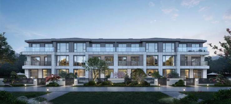 观山揽翠汲取湖州文化底色,将东方气度与时代精神完美融合,新中式坡面屋顶化繁为简,宛如山脊起伏;纤薄框架、全球公建化玻璃立面,与山峦叠翠交相辉映