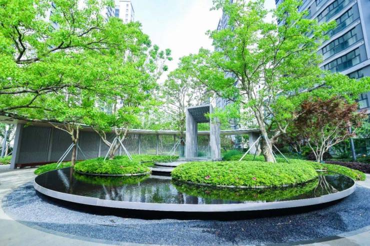 建面约5300㎡中央景观轴,一千余平方阳光大草坪,直径约30米艺术环廊……每个数字,都是中海观江樾建设的用心,高低错落的花木铺展开来,生机盎然,让每一个归家的人都身处自然之中,获得情绪的治愈。