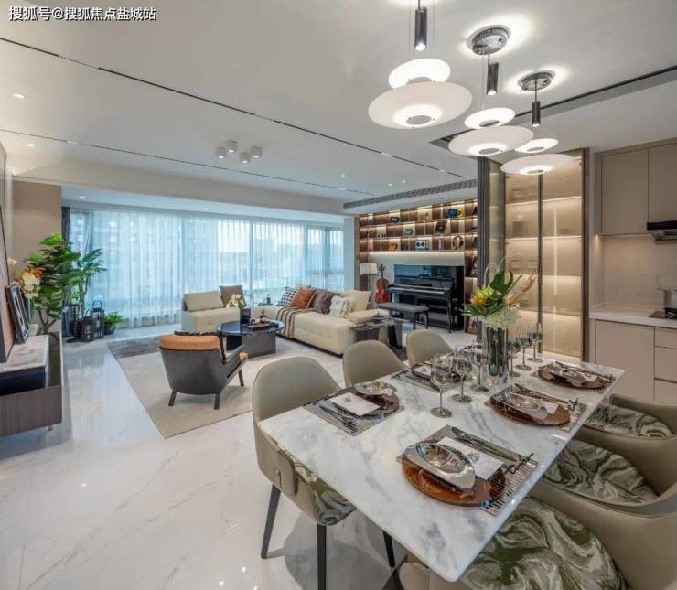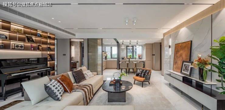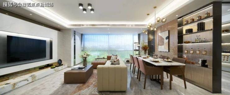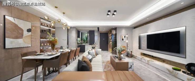 建面约111㎡轻奢三房样板,以约12.5米南向四开间、约6.2×1.5米双联阳台、超奢一体化家庭厅的优越配置,做到了媲美市场同类产品130㎡的大宅感。