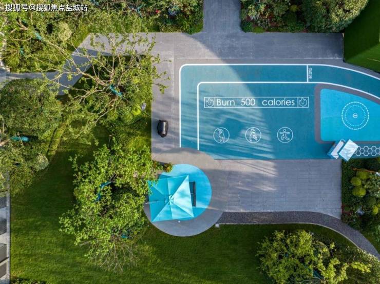 活力健身花园里,串联社区各个景观节点的轻氧跑道,一路穿越花丛与林荫,慢跑也是一场穿越风景的旅行。