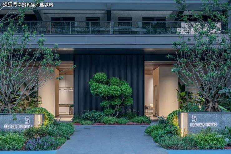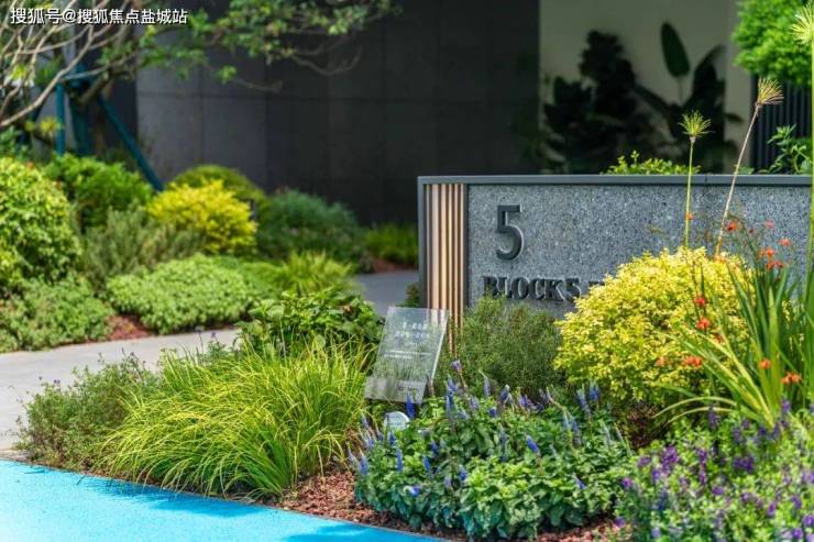 行至单元楼栋前,口袋花园与归家景墙花团锦簇,宛若将莫奈的花园搬至自家门前。