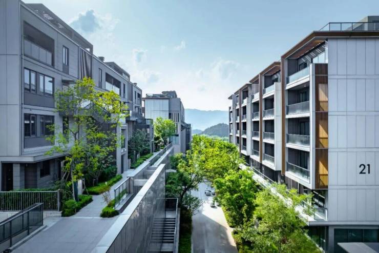 33幢叠墅仿佛“种”在大奇山的怀抱里;平均1比1的超宽楼间距,坡地别墅再配以3米一段的高差,采光视野绝佳;建筑面积约168㎡~200㎡,单从建筑面积上无法想象出户型的阔绰尺度,亲临现场才会为之震惊。大部分楼幢只有上下叠,私梯入户。下叠自然是尊崇感拉满;拥有“江南第一名山”大奇山山景的上叠更加令人过目不忘——(部分户型)上下6开间朝南,双层大阳台,特别是那个可以仰望星空的大露台,已经在脑海中畅想出一场星夜BBQ!