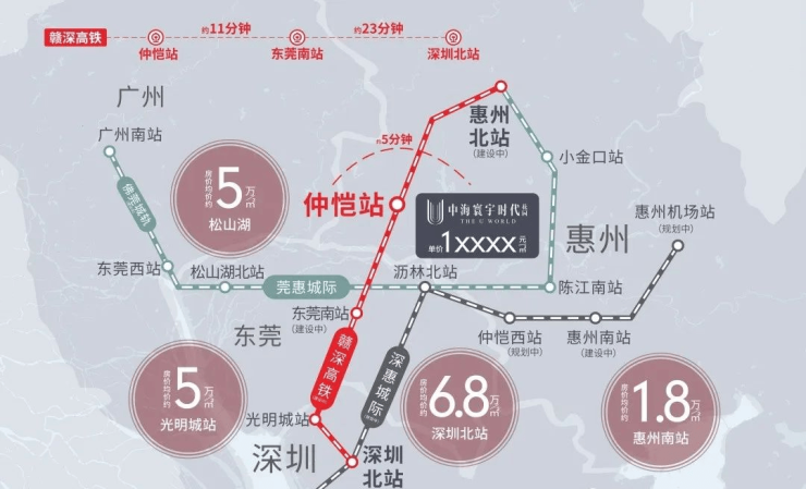 项目距离仲恺西站约5公里 ,40分钟直达深圳前海,预计2023年动工。