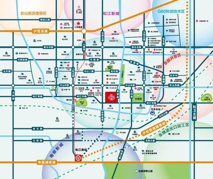 交通:地铁站:9号线醉白池站(距本案约1公里),火车站:松江火车站(距本案约1.5公里)、 松江南站(距本案约3公里)
