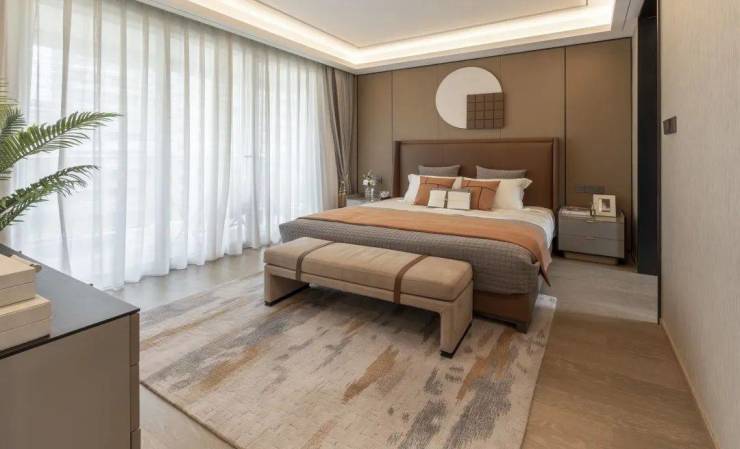 下叠带私享院子,下叠的一楼客餐厅直通约50-60㎡南向庭院,部分可达约100㎡花园,尺度豪华的主卧空间搭配足有7.2米长的连廊阳台,形成“主卧—书房—连廊阳台”的格局,即使起居在二层,也能与自然形成良好的互动。