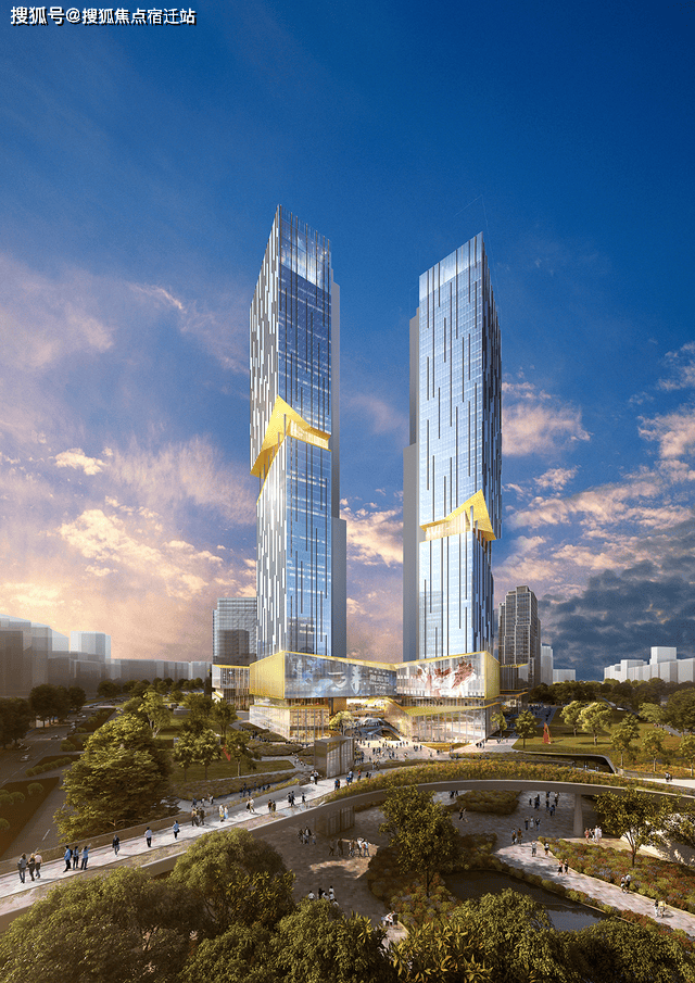 以海派建筑风格、塔冠造型,致敬城市经典。极致线条勾勒,金属铝板与大面积玻璃搭配,辅以香槟色与灰色系色彩, 彰显建筑立面的鎏金质感与美学。