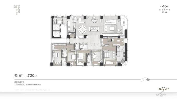 - 归屿730㎡:错层设计实现动静分离,5个南向套间+100㎡空中花园,成就家族传世恒产。