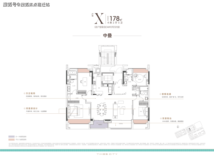 项目的中叠 四开间朝南 ,超大IMAX的采光面,妥妥市区豪宅大平层的尺度感。