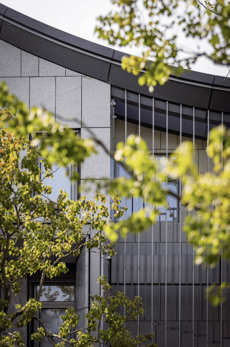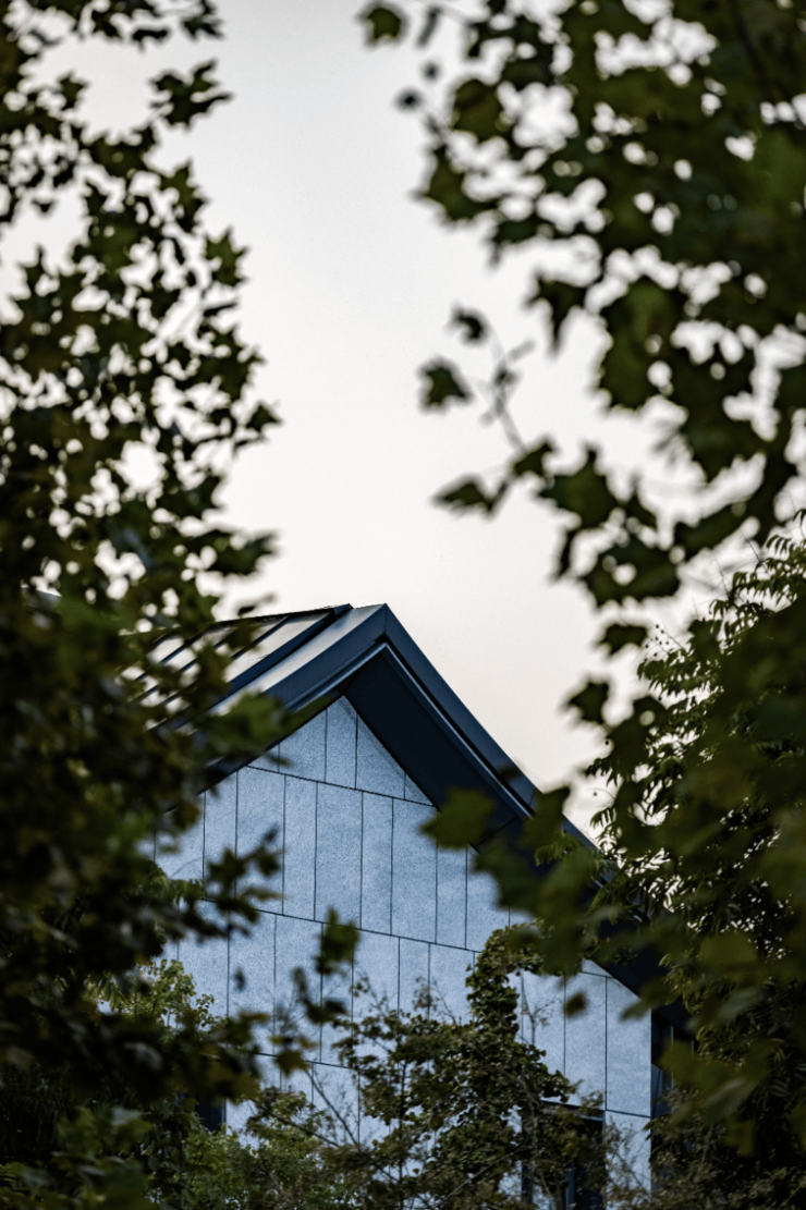 涵雲軒的落成,无疑是西溪崭新坐标所在。从湿地公园自然纵横的山水肌理中,设计师获得错落式建筑布局灵感;从南宋坊巷与江南院落,沉淀出涵雲軒特有的建筑轮廓与院落气质;取法自然水泽纹理,创新运用铝镁锰金属绘构出漂浮于西溪上空的唯美涟漪;