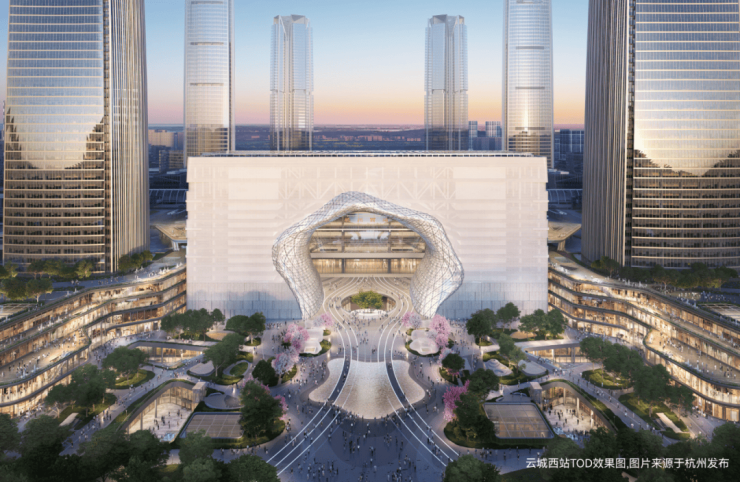 ② 云城西站TOD:分为南北两大综合体,地上总建筑面积约130万方,规划办公,商业,酒店,剧院,会议,云端观景,文化展示等功能。