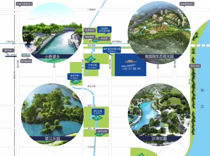 约1091亩南国千花洲生态观光园,约12万方沙湾忆趣公园望江乐园,小桥望乡公园项目内配置约5000㎡城市运动主题公园