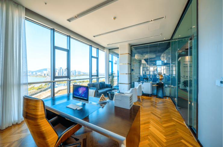 办公层高:4.5米层高办公层高,多面玻璃幕墙,告别压抑办公环境