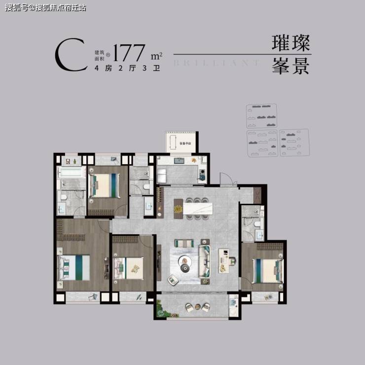 【宽奢四室】南北通透4房,家人独立房间,启幕品质人居