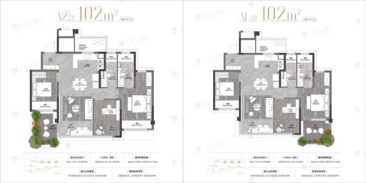 建面约102㎡,南向面宽达到约12.2米,几乎实现了传统120㎡的整体空间感,特别适合首次置业的年轻人。