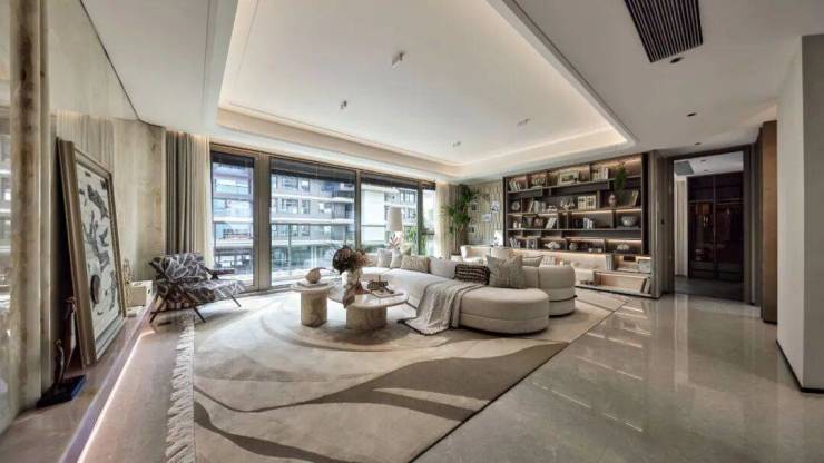 横厅开间超7米,如果想,你甚至可以在沙发后面放上一个台球桌;