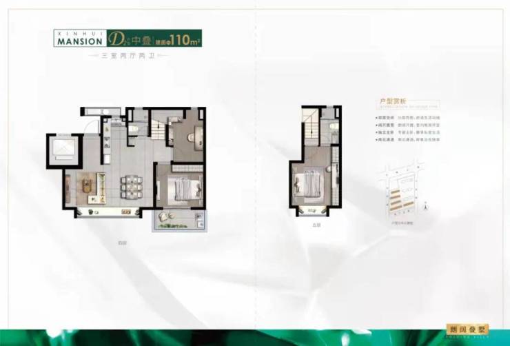 叠拼户型按竖向划分动静分区丰富的生活场景间随心切换互不干扰,套房化主卧带来类酒店居住体验的舒适感,视界宽景飘窗融合生态风光。