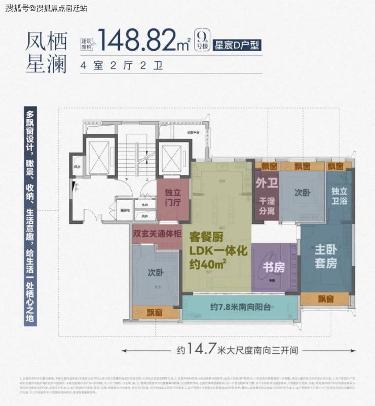 建筑面积约148㎡打造了三房/四房两种户型。四房户型约14.7米四开间朝南,全景视野,通透开阔,尽显生活的适逸感;是尺度更是人生气度。入户双玄关通体柜设计,井然生活秩序,强大的储物功能实用又美观。