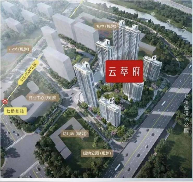 云萃府位于南部新城的东北角,东边就是七桥瓮生态湿地公园,部分户型能看到紫金山,楼下不远处是地铁5号线七桥瓮站(预计明年3月底、4月初全线通车)。