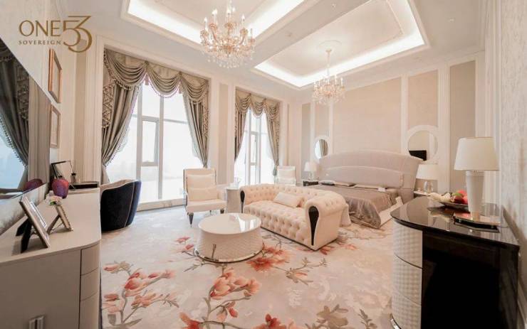 无论地段或定位,ONE53配得起一平方米2万5的超奢装标。153套大平层,除了顶跃,户型最大约418㎡,最小也有约244㎡,户户无敌视野。最夸张的是,近70%房源的层高近4.8米。