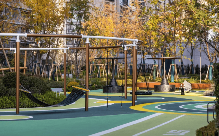 以“混龄光环”为名的大型童玩设施,丝毫不输给外面的市政公园。滑梯、秋千、各种攀爬装置一应俱全。