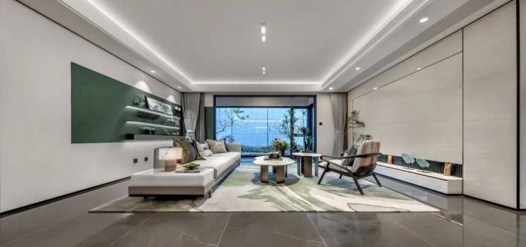 四开间朝南,南向超宽尺度,让空间底色被窗外景色点缀。
