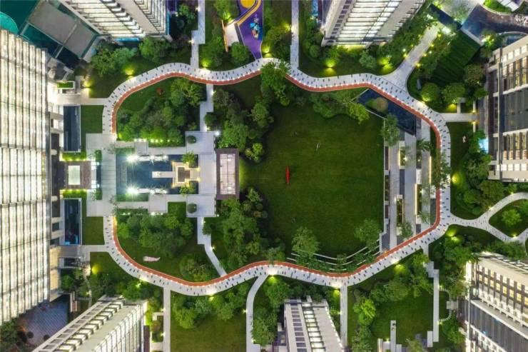 近1200方中央水庭,2000方左右的步入式大草坪,300米夜光导航跑道,既有星星花草作伴、又可以跑步健身谈天说笑,尽享人文与大自然之美,也诠释了项目“打造人文全龄化社区”的理念,无论是儿童,还是老人,都能有全身心的参与感和丰富的体验感。