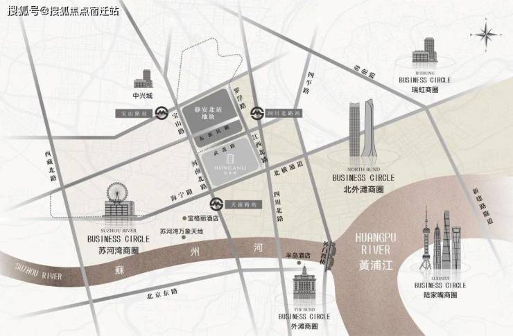 商业:3公里范围内,汇聚苏河湾万象天地、北外滩商圈、瑞虹商圈、南京西路商圈、外滩商圈、陆家嘴商圈等,东南侧步行可达18街坊,西南侧在建安康苑、湾上综合体地块。