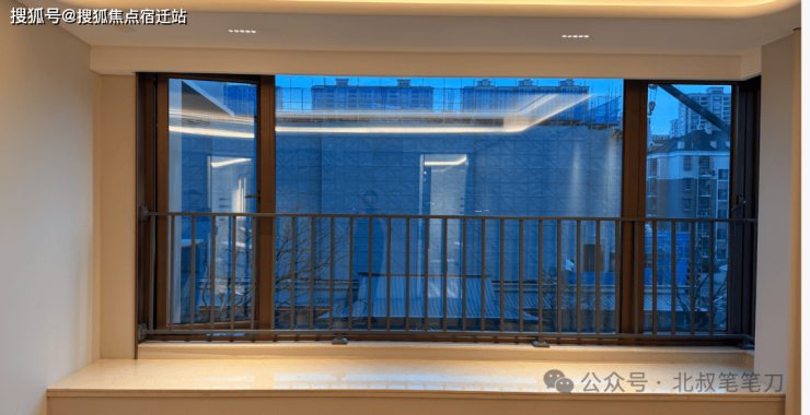二是主卧飘窗的护窗栏杆设计极其不合理。交付样板的飘窗上方是有护栏的,但是这种形式的护栏既不好看也不好用,业主入住后基本都会默认拆除;可一旦拆除,窗户打开就有很大的安全隐患。而且按照现交标的窗型条件预留,也不具备做嵌入栏杆的可能性,入住后想改造都难。