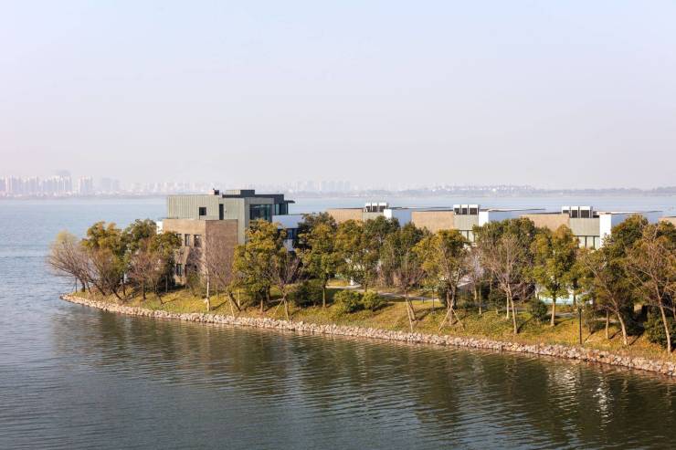 音昱水中天位于上海以西的苏州近郊,依偎于宁静的阳澄湖半岛,坐拥澄澈湖景,占地18.9万平方米。由Tsao & McKown建筑事务所担纲设计,总投资35个亿,是一处以融贯东方智慧与西方科学的正念生活体系,打造的一处大型身心养生憩所。