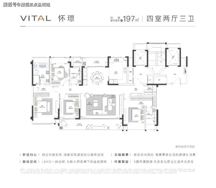◆约8000㎡核心景观轴、约2400㎡两个尊享庭院、南北各区设共享花园和私享花园。