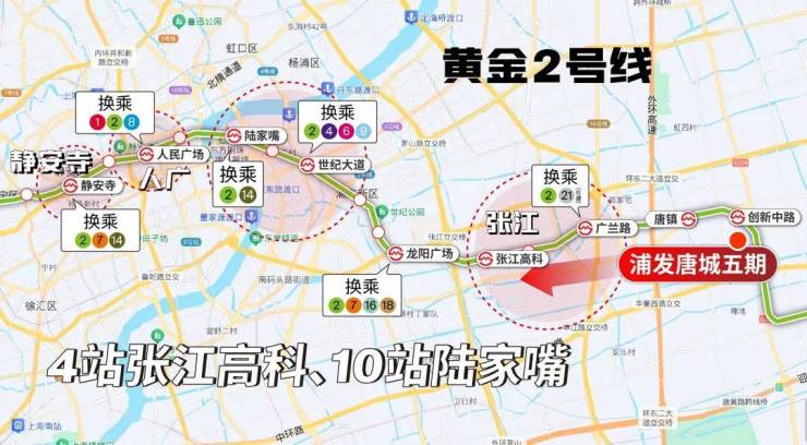 交通方面:黄金2号线,4站张江高科,浦发唐城五期距离2号线创新中路站仅约400米,高效通勤。且2号线能级高,一路串联的都是像陆家嘴、人民广场、静安寺等市中心CBD。
