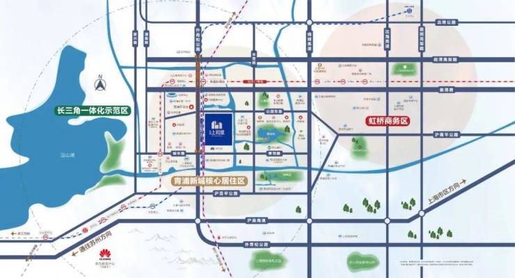 1、17号 线青浦新城站约900米,直达虹桥交通枢纽,无缝换乘2号线、10号线、13号线(建设中)