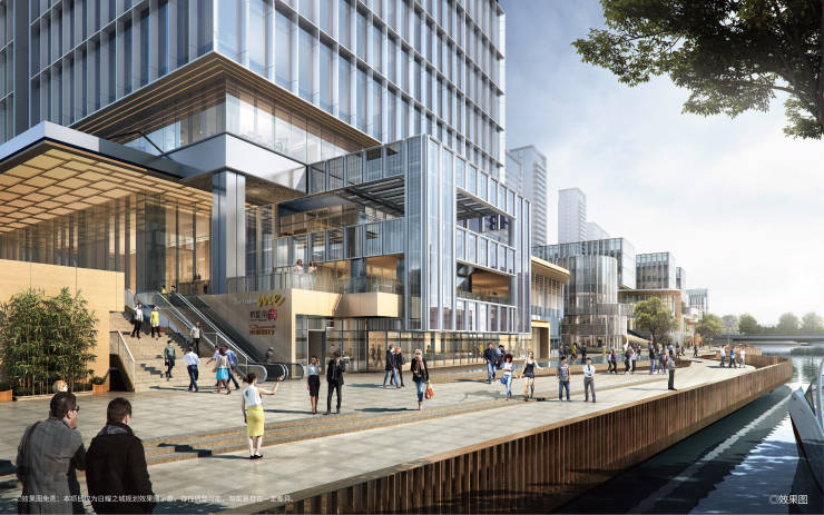 日耀之城项目南临亚运河,沿河横向展开,是亚运村唯一的滨水景观建筑群。