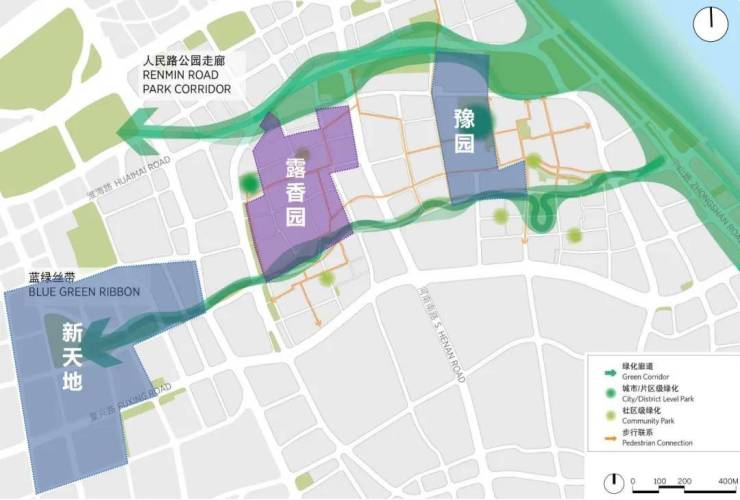 蓝绿丝带连接新天地、露香园、豫园及外滩