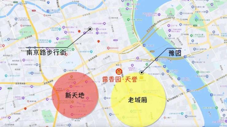 15分钟中央生活圈,城市中心之心的位置,2公里内囊括淮海路、新天地、人民广场、外滩、陆家嘴等城市级CBD。人文、潮尚、艺术辉映,一城繁华尽收囊中,一条贯穿新天地-露香园-豫园-外滩的城市绿带,将历史与地势打造成一个有机整体。