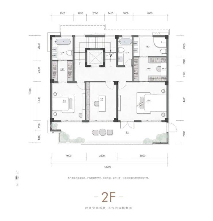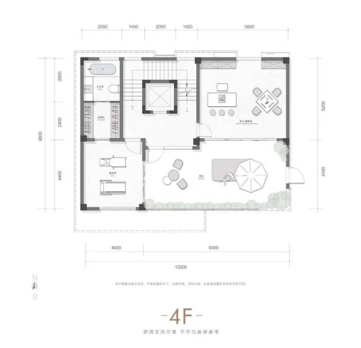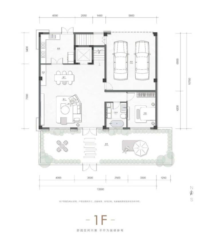 户户南入户,无地下室,一楼设置2个停车位,总高地上4层,一楼层高4米,2-4层层高3.5米,4楼顶为露天阳台。单层面积约142。