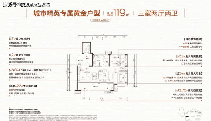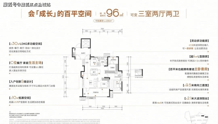 玄关及玄关库规划、提升家庭整洁度; 百变空间,三房可改四室。
