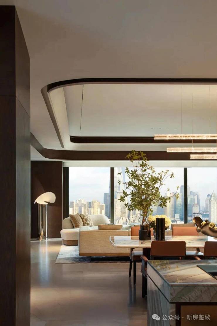 对追求家族传承的领袖而言,这不仅是一处居所,更是**东方美学的活态博物馆**。项目外立面以金属线条勾勒海派风骨,室内由梁志天、吴滨等大师操刀,融合木饰面、奢石与智能科技,在低调中彰显“不见涂料”的极致工艺。主卧55㎡的套房尺度、270°环幕落地窗,将陆家嘴天际线化为私藏画作,每一帧皆是历史与当代的共鸣。