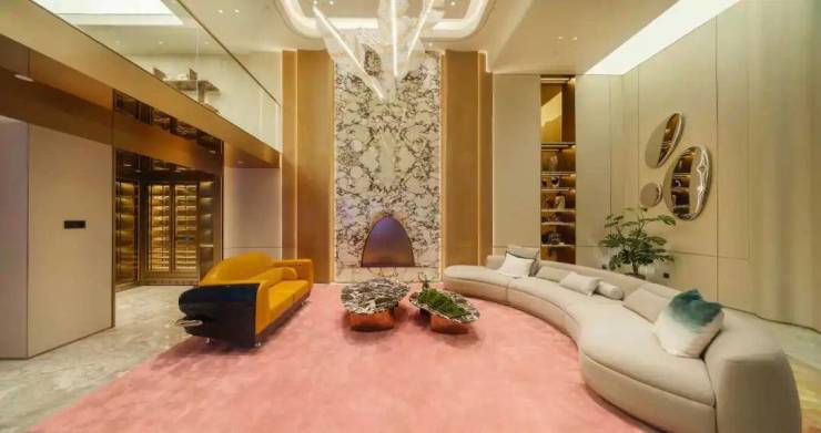 建筑深研《营造法式》精髓,独创“三重屋檐”结构——上檐取法宫殿规制,外檐复刻宋式歇山顶,下檐采用绞角造工艺,搭配伊朗进口蓝眼睛石材、香槟色铝板与大面积落地玻璃,传统与现代碰撞出独特美学。社区规划“三进二庭五园”礼序空间,铸铝门、汉白玉桥、四水归堂构成归家仪仗;近40吨汉白玉、百年红梅、贵妃罗汉松等珍稀造景,让每一步都如行走在宋画之中。样板间内,意大利鱼肚白石材、宝格丽奢石、雀眼木饰面等材质,将高奢感与传世感拉满。