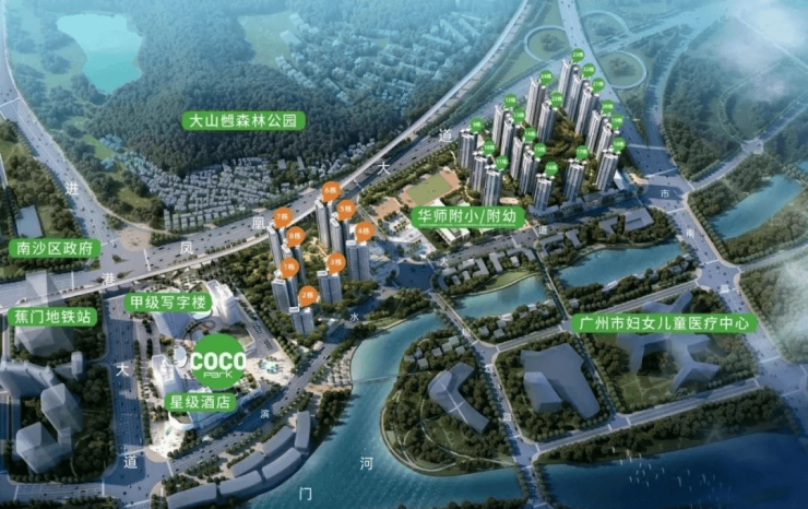 项目自带10万㎡购物中心COCOPark,打造4层主题购物空间+1层天台花园,引进精品超市百佳永辉、超5000㎡横店影城、南沙星河COCO Park预计年底开业。