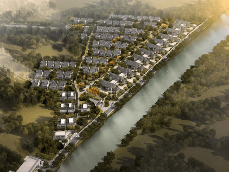 双溪环绕:回归私属的纯净自然。北苕溪是余杭区和杭州城北的饮用水源及行洪、汇水河道,河水清澈见底。对于当下人与自然的生态关系而言,自然资源的占有是十分难得的,也是保证生态生活的基础。径山园,从资源占有角度来讲,临双溪而建,践行“让居住回归生活本源”的初衷,形成山水生态气候生活圈,还生活以自然与洁净,享受生态带来的活动空间。