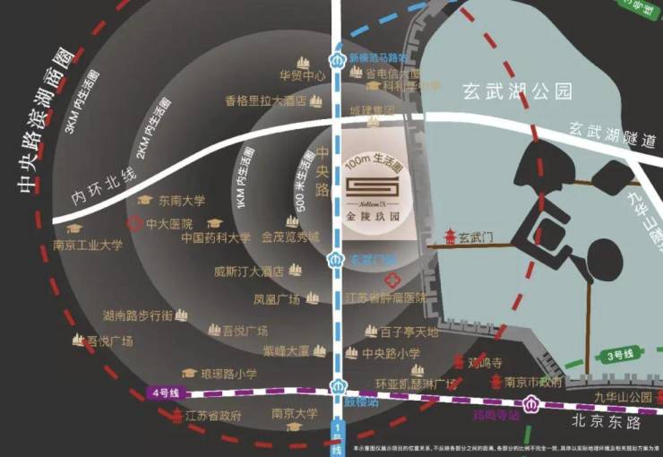 金陵玖园·玠园,位于玄武湖畔,明城墙下,中央路218号,其选址标准可谓匠心独运。首先,它占据了城市核心、区域核心地段,不仅交通便利,而且周边配套设施完善。距离玄武门地铁站仅约200米,地铁1号线3号口近在咫尺,无论是出行还是游玩都极为便捷。同时,中央路作为城市主干道,快速连通城市内环,周边公交线路繁多,出行无忧。