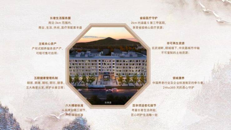 此外,金陵玖园·玠园周边还拥有得天独厚的自然景观资源。玄武湖、明城墙、紫金山等著名景点均在2公里范围内,长者们可以随时漫步于湖畔、城墙下,感受大自然的清新与宁静。同时,这些自然景观也为长者们提供了丰富的户外活动场所,让他们在享受健康生活的同时,也能感受到生活的美好与乐趣。