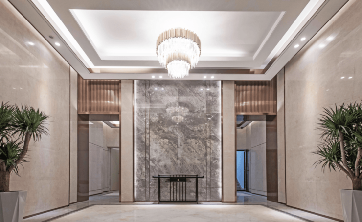 🏙【美学立面】:三段式建筑形制,外立面采用维纳多白色石材、虎斑黄砂岩石材与真石漆等材料,温润端庄,历久弥新。