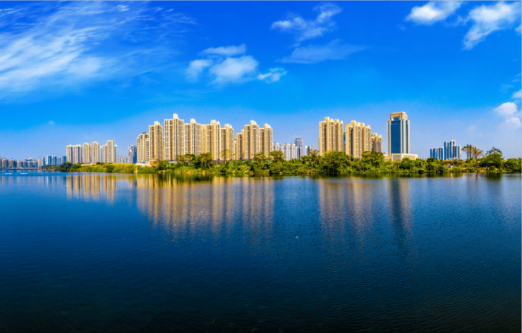 金山湖公园——粤港澳大湾区最大城央生态公园之一、国家5A级景区,其中三期湿地公园,水域面积占据整个金山湖公园的2/3,正处于鑫洲·湖心岛1号门口;目前,金山湖公园三期先行段已启动建设。