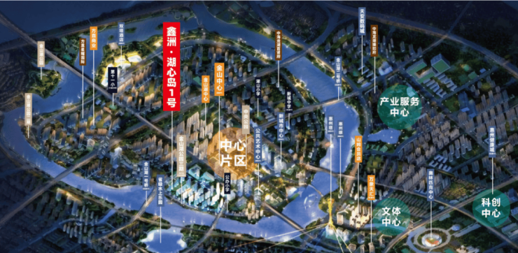 金山湖作为金山新城分区规划中不可或缺的区域核心,将打造成汇聚惠州文体、科教、产业、科创的核心区、高端区、示范区。而鑫洲·湖心岛1号占据金山湖1/4湖心岛岛心,形成集湖、岸、园、mall于一身的120万方人居大城。