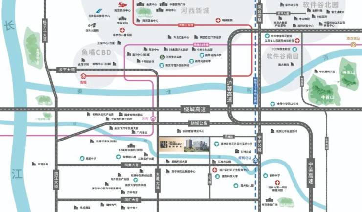 便捷轨交:S3号线刘村站1公里,直达河西与南京南高铁站,S3号线连接2号线,触达鱼嘴,规划9号线,直接连接刘村站与鱼嘴站;区域内S2号线、7号线正在修建中,未来区域发展前景向好。
